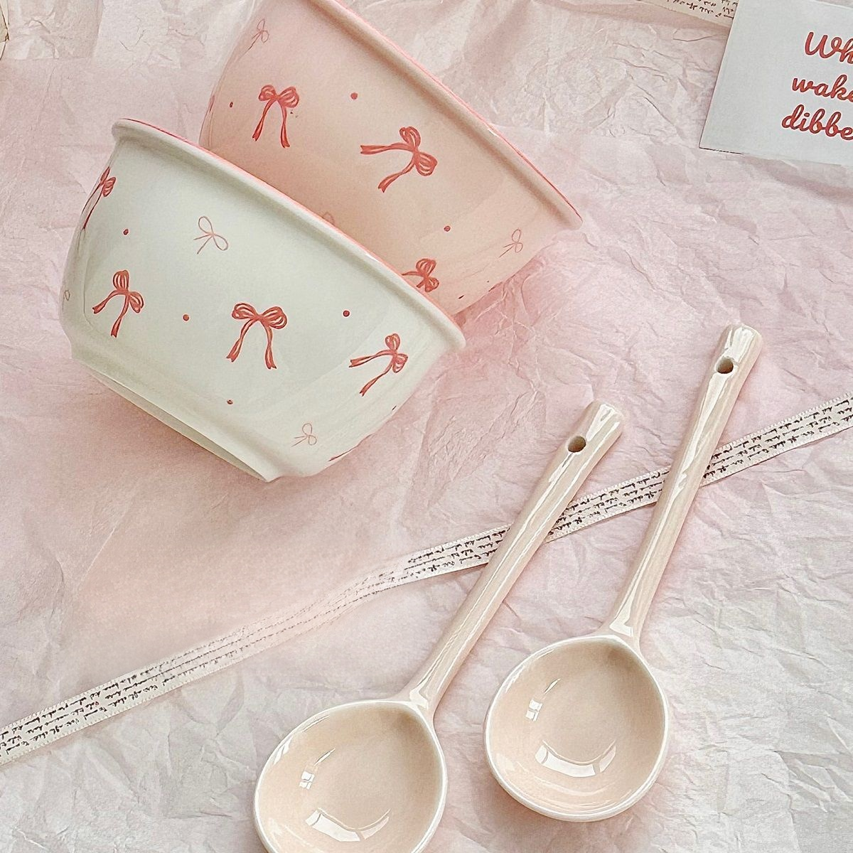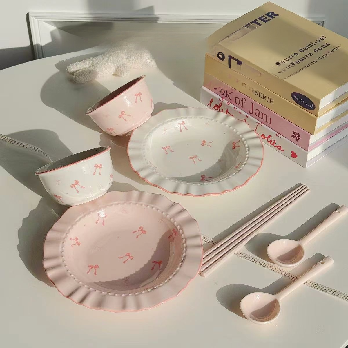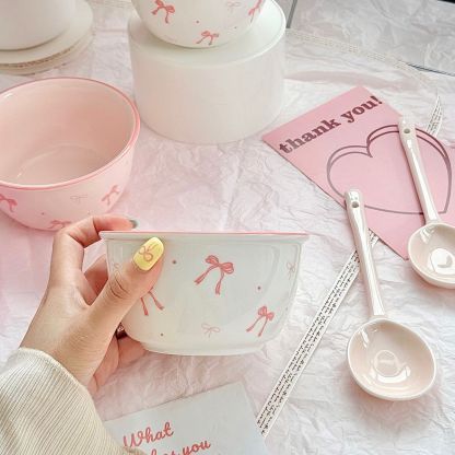 Bow-knot bowl and plate set for home use, ceramic bowls